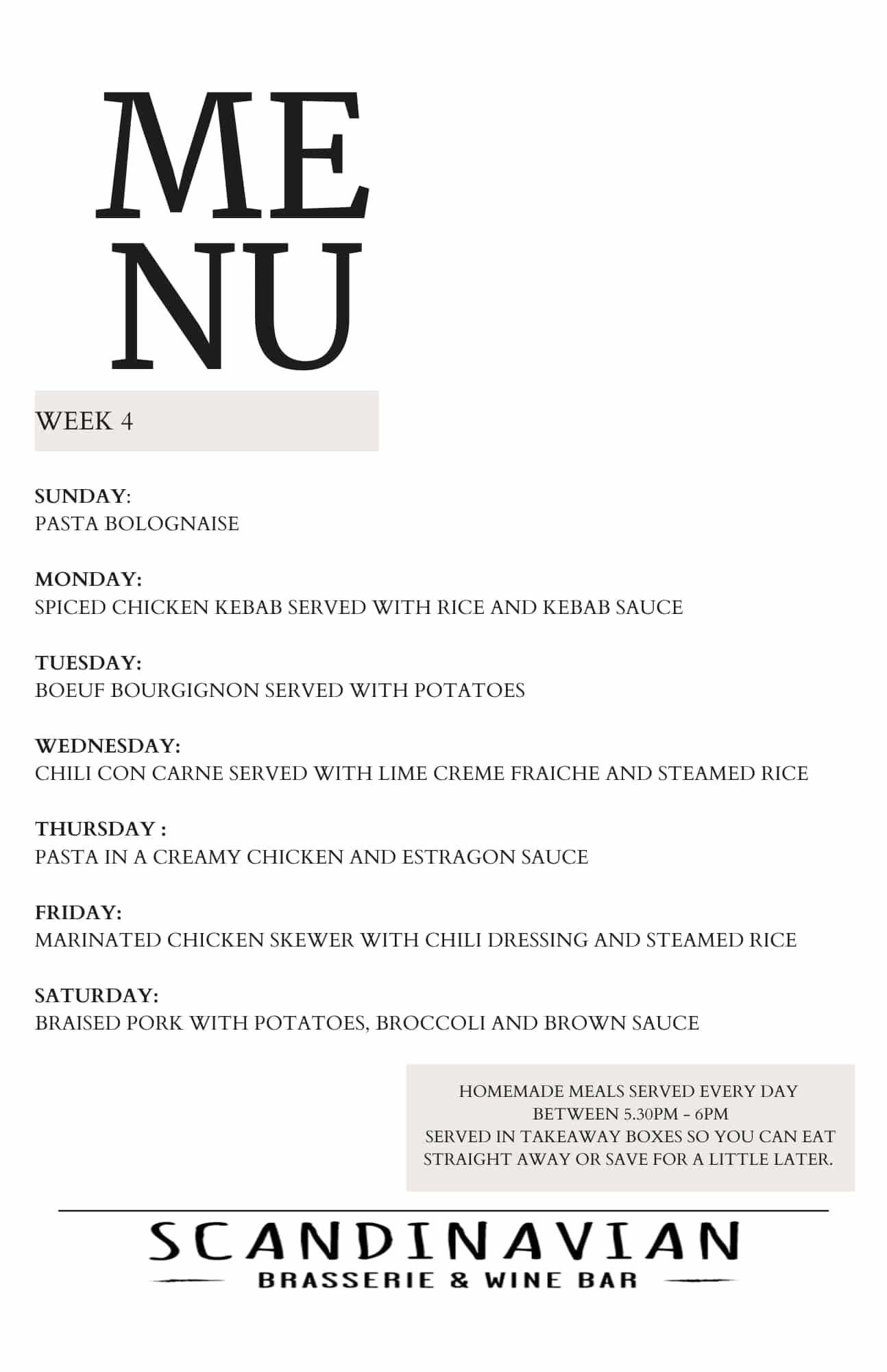 Varje dag bjuder på hemlagad mat enligt veckomenyn – färdigpackad och klar. Du hämtar bara din låda och tar med hem. Enkelt, snabbt och riktigt gott.